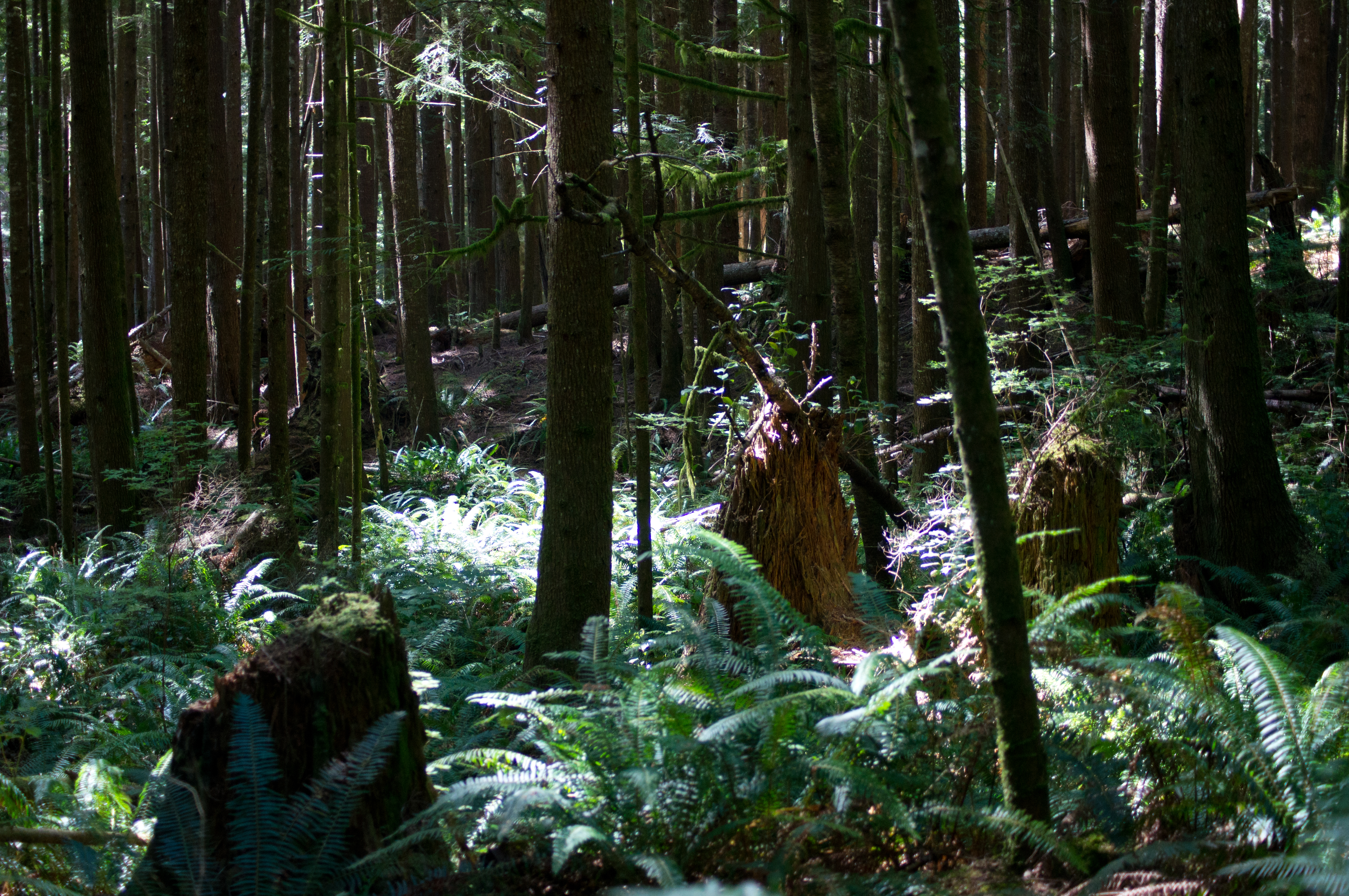 The variegation of the light and shadows, and the richness of the undergrowth take me to a place before time. (China Beach, BC)