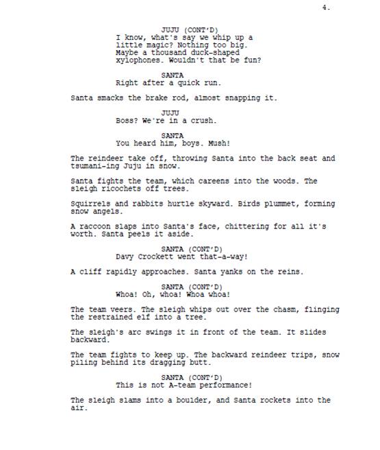 In a screen- or teleplay, you should only be telling me things I need to know to understand the story or interpret a character’s behaviours and attitudes. Unless being 7 feet tall means a character can do something no one else can do and the plot in some way turns on that ability, then I don’t need to know the character is 7 feet tall.